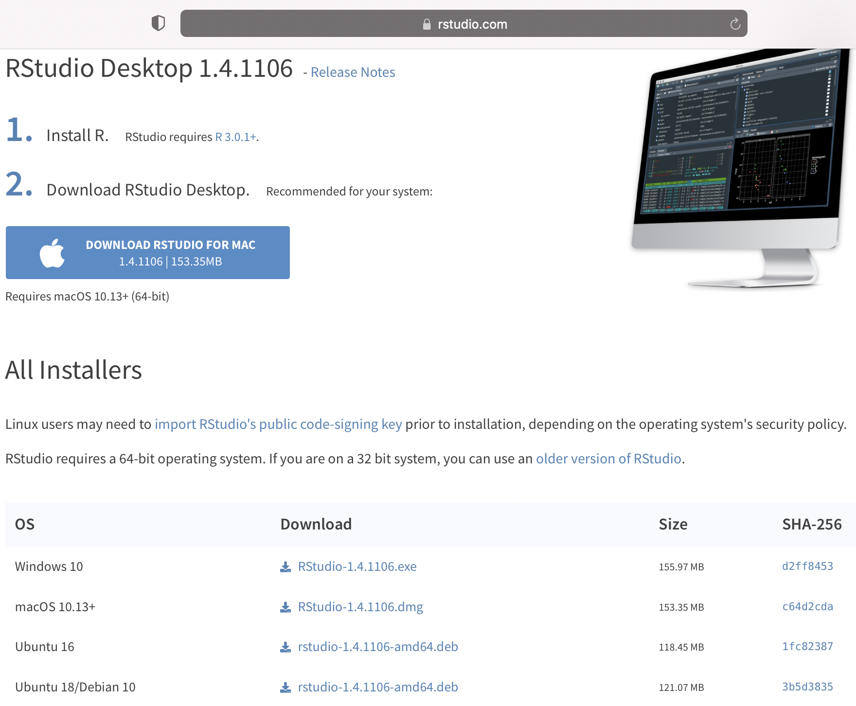 Figura 5. Links de descarga de RStudio para tu sistema operativo.